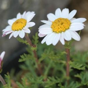 | 特徴 | 山地の岩場などに生える高さ10~60㎝の多年草。 東アジアからシベリア、ヨーロッパ東部まで広く分布ししばしば石灰岩地の残存植物となっています。 日本では北海道から九州まで、点々と隔離分布しているようで、地下茎を長くのばして殖えます。 下部の葉は長さ1~3・5㎝、幅1~4㎝で2回羽状に深裂または全裂し、長さ2~4.5cmの長い柄があります。 表面は光沢があり、裏面は淡緑色で腺点があります。 頭花は直径3~6cmあり、舌状花は白色。総苞は長さ6~7㎜で、総苞片は3列に並び、ほぼ同長、外片は線形で毛は少ない。 イワギクは地方によって葉の切れ込みや裂片の幅などに変化があります。 仲間には韓国済州島に分布するサイシュウイワギクがあります。この株はイワギクと書いてあるものを購入しましたが、済州島に分布するイワギクのようです。 |