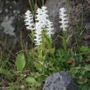 特徴 | 山地の林内や谷沿いにに生える多年草。 花茎は高さ15~40cm、線形の茎葉が付きます。茎頂に長さ10~20cmの総状花序をだし、白花を多数つけます。 花は下から順に咲き、花被片は先が太い線形で、上方の4個は長く、長さ8~12㎜、下方の2個はごく短い。 白い花の姿からこの名があります。 |