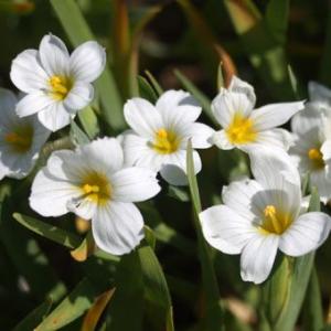 クリーム色の花が重なるように咲き、日本のニワゼキショウと同じ仲間とは思えない大きくて素敵な花です。