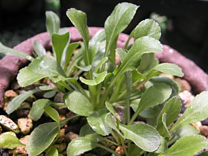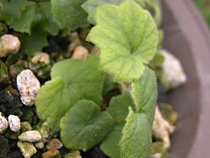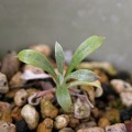 2003年7月8日赤玉土と腐葉土を混ぜた用土で発泡スチロールの箱に播く。 芽生えを確認するまでは、藁をのせて乾燥から守り日陰で管理した。 2004年3月6日発芽確認、朝日を当てて管理した。 双葉のままに休眠に入ることになるようだ。 4月26日現在も双葉のまままだ緑色をしている。 |