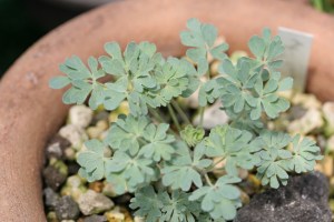 2006年1月7日、蝦夷砂、軽石、日向土、硬質鹿沼土の混合用土を、水洗いして播く。 霜よけと風除けをした場所で乾燥しないように注意して管理。 2006年3月8日発芽確認、たくさん芽生えた。 2005年にも播いてたくさん芽生え元気に育っていたのに夏越しで来たのは1本だけ、もう一度挑戦して見ようと思って播いた。 この苗は2006年5月20日に最初の植え替えをしたもの。 置き場所がないので、苗は大きな鉢で管理している。 |