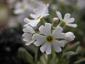 2年目のシロバナレブンコザクラ。 種から育てると、違った形の花も咲いてくれて嬉しい。 |
